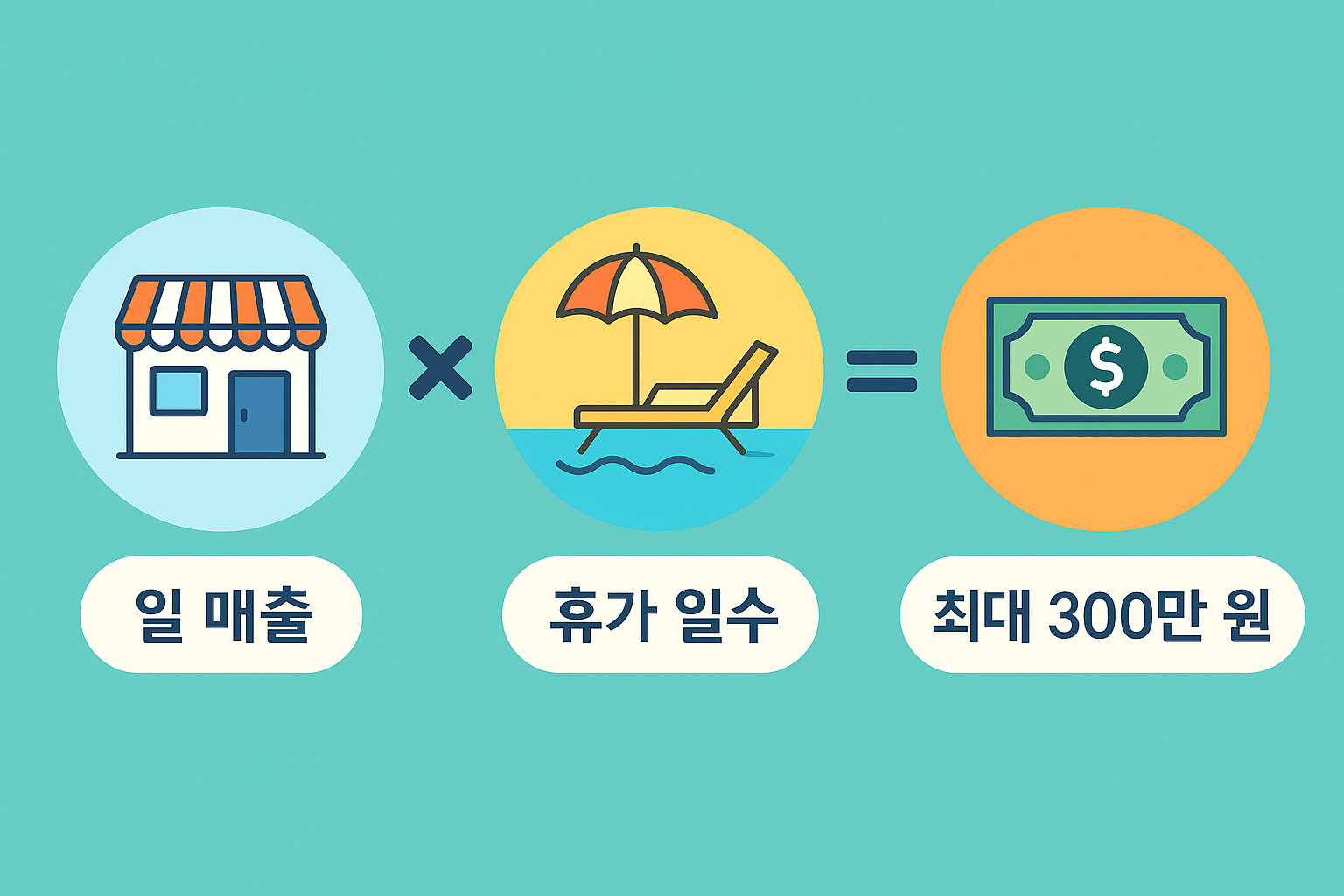 - 지원방식: 휴가 기간 동안 매장 문을 닫고 쉴 경우, 하루 매출 × 휴가 일수만큼 지원 (최대 300만 원)
