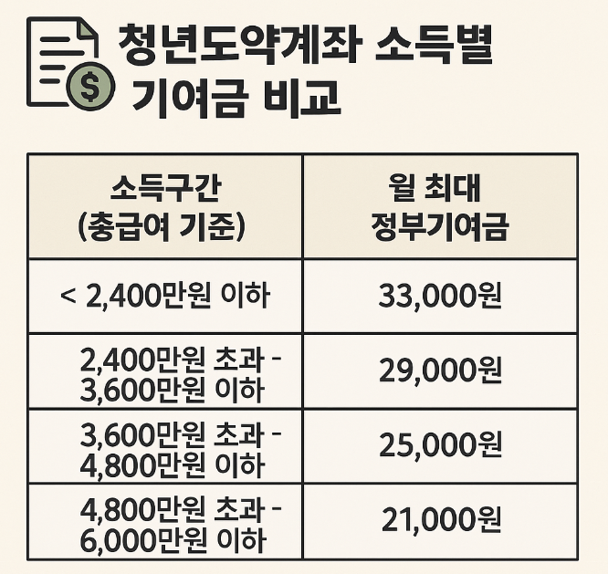- 정부기여금 산정 방식: 소득구간별로 납입액의 일정 비율을 기여금으로 지급