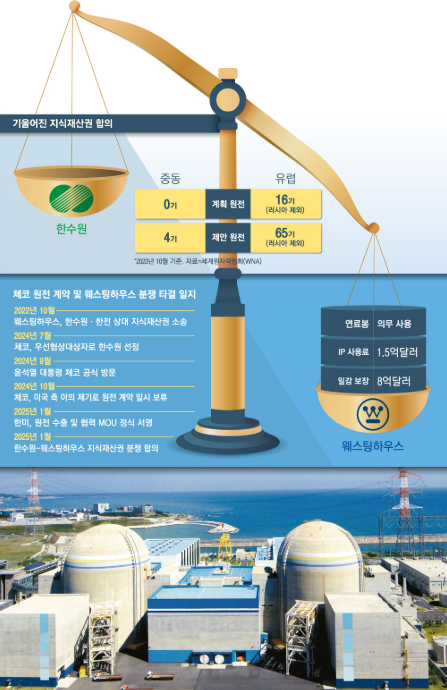 한수원과 웨스팅하우스는 2025년 초, 수출 계약 관련 분쟁을 종결하면서 ‘기술료 + 물품 구매’ 조건을 수락했습니다.